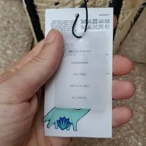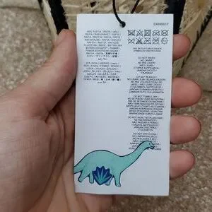 The raffia is delicate and has separated in a couple of places. My little one decorated the tag with dinosaur stickers, but those are the original tags.