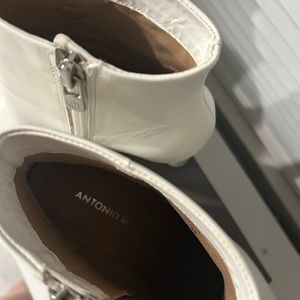 White Leather Antonio Milani Stazie Ankle Booties. Only worn once, but walked a good amount in them that day, so see very minor wrinkling and scuffing in photos, particularly the sole. Size 7.