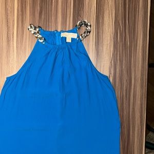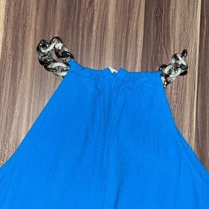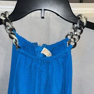 Mini halter dress in Aegean blue with chain straps. Zips partially on the back. In good condition. Please see all pictures. Smoke-free home. Offers welcome. Bundle and save.