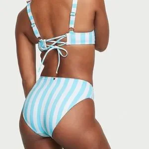 Victoria’s Secret SWIM High-Waist Full Coverage Bikini Bottom NWT AQUA/WHITE 👙 NEW IN PACKAGE