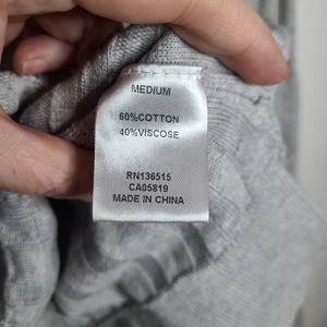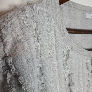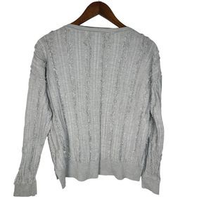 Harper Lane Grey Fringe Lightweight Cotton Blend Sweater Womens Medium