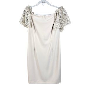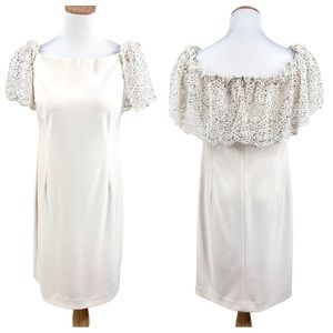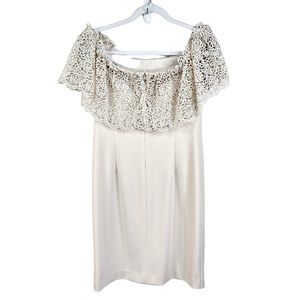 Joseph Ribkoff Off-Shoulder Lace Sleeve Sheath Dress Cream SZ 10