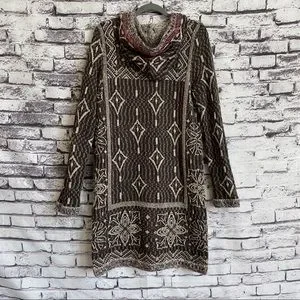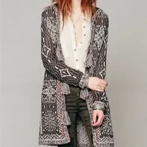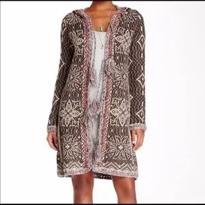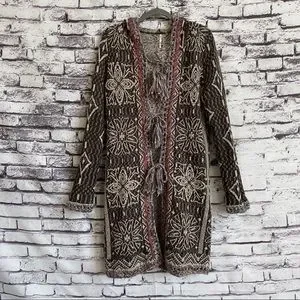 Free People Kai Pom Pom Hooded Cardigan in Brown