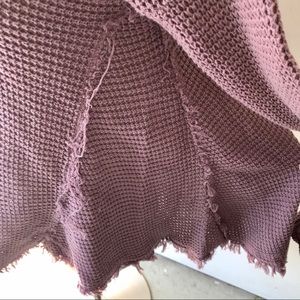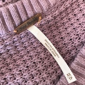 Free People Strappy Loose Oversized Raw Hem Sweater Sz XS Lavender Cold Shoulder