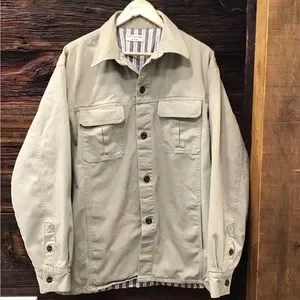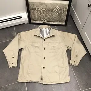 Vintage Mens Insulated Seersucker Shirt Jacket Size L Canvas Chore Barn Shacket