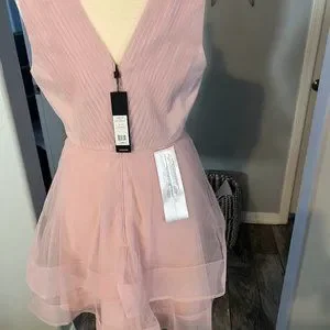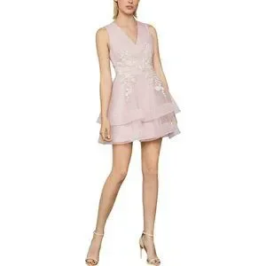 NWT 398 BCBG MAXAZRIA DRESS TIERED PALE PINK EMBROIDERY LACE TULLE. Size 12
