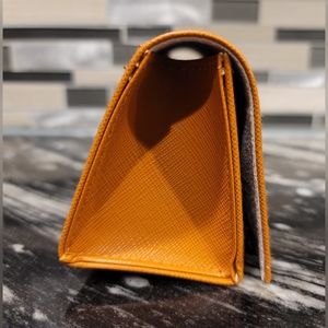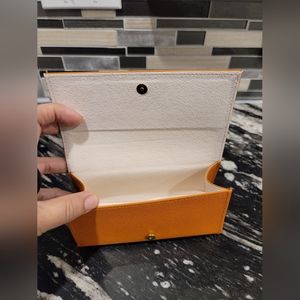 NEW Authentic Tory Burch Leather Eyeglass Case in Orange with Matching Tory Burch Cleaning Cloth. Case has a magnetic button closure.