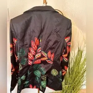 STYLEWE Ellie Saab Inspired Long Sleeve Floral Blazer Women’s Size Small Black and Multi Color