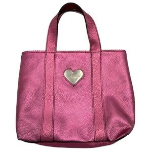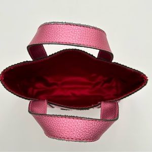 Victorias Secret Tote Bag Top Handle Small Metallic Pink Faux Leather Barbiecore