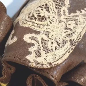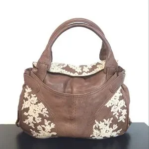 authentic Valentino Garavani urban lace embroidered brown leather satchel bag.