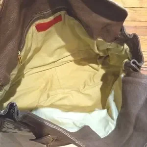 very good condition. both exterior and interior are in good shape. front and back magnetic closure pocket compartments. interior has one zip pocket.