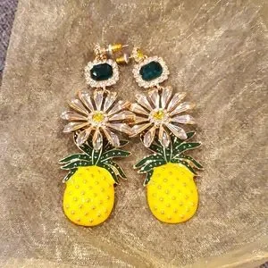 Pineapple lovers, these earrings are everything! beautiful with emerald stone and daisy.all one piece