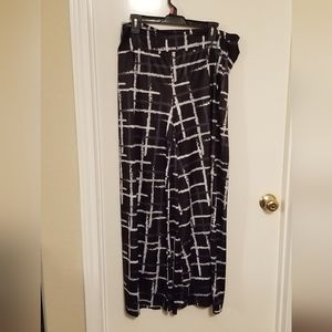 Bon Apple Tea silky black and white abstract pocket wide leg pants size 1XL