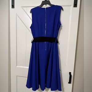 Beautiful pleated top and skirt; wide, detachable stretch belt (with belt loops); hits right above the knee, zipper back