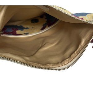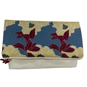 Rachel Pally Foldover Blue Yellow Floral Canvas Faux Leather Clutch