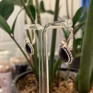 Black and white faux marble stone looking earrings. Silver Dangle earrings that hook on with back closure. See photos