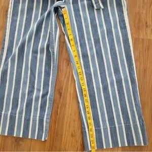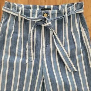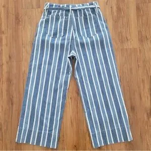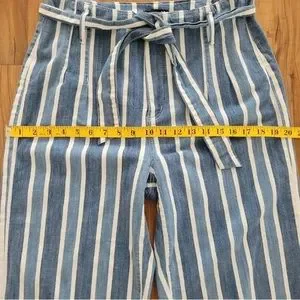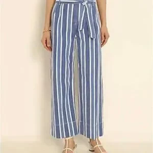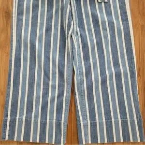 Ann Taylor High-Rise Wide Leg Denim Ankle Pants Stripe Blue White Waist Tie Sz 6