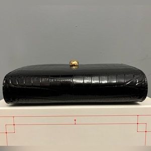 ALEXANDER MCQUEEN Small Skull Bag & Card Holder in Croc-Embossed Black Leather