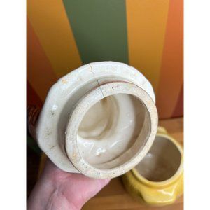 Vintage American Bisque ceramic pup in a pot cookie jar ceramic hard to find 1950s kitschy . Please review all pictures before purchasing. This does not affect the look of when the lid is on at all. Shipping from Canada so please allow extra time, discount on shipping for multiple things bought so please message if buying more then one item. All items are vintage/preloved and may show that. Any indiscretions will be noted, but please always reach out with any questions. Thanks for checking out Scaredy Cat Vintage - Amanda 🙂
