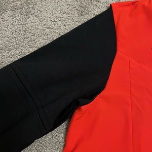 Dual hood, alternate sleeve material for warmth and functionality - sleeves can be cleanly cut on the hem for a short sleeve zip