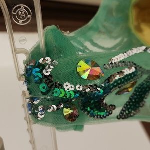 fancy mermaid style dress, size 6 but has been fitted to fit a 2/4, green/yellow/blue colors, very fancy and nice dress, worn once or twice, make an offer or bundle to save