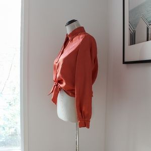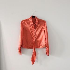 SOLD-Vintage 1950s Orange Satin Tie Front Western Crop Top / Shiny Dagger