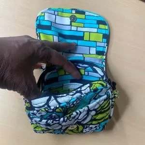 Adjustable strap multiple pockets card slot inside zipper closing snap button can wear with belt too perfect for traveling..6” inches wide x 6”inches Height