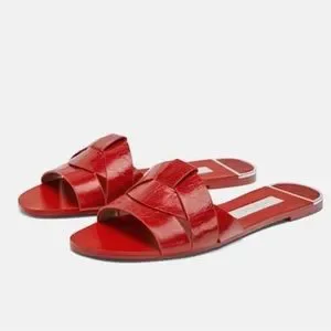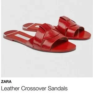 Zara Genuine Leather Red Crossover Slide Sandal Slipper Flat Shoes size 37 NWT
