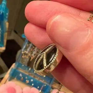 Reversible necklace, gold on one side then the black obsidian stone on the other