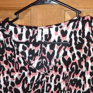 V neck peach,gray, black and white design top size Large