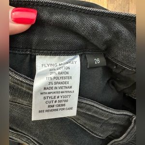 Flying Monkey | Women’s black distressed skinny jeans. Black color is washed/lighter now. Please see all photos for jeans measurements, condition, and details. Good used condition!