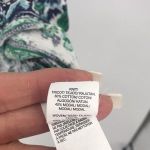 Lucky Brand green blue floral button front top. Preowned, no flaws. Cap sleeve.