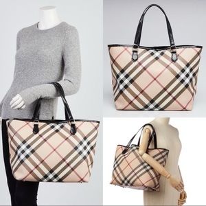 💯 Authentic Burberry LARGE Nova Check Tote Handbag Shoulder Bag