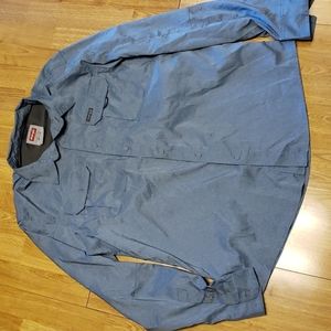 Excellent pre-owned condition Long sleeve button front blue outdoor series shirt with back vented panel. 24.5 in pit to pit and 28.5 in shoulder to hem.