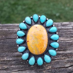 Handcrafted Sterling Silver Turquoise Bumblebee Jasper Huge Ring
