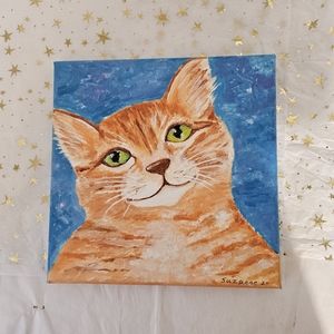 Original Art Acrylic On Canvas Cute Kitty Painting