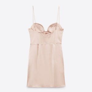 Zara Beige Rose Corset Satin Effect Drapped Party Coctail Bridal Mini Dress