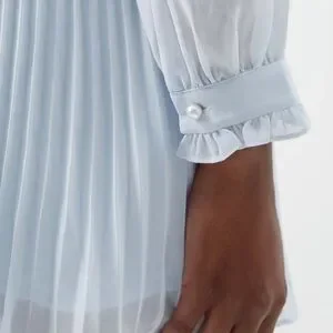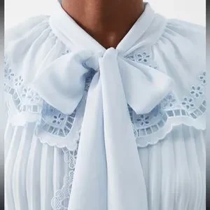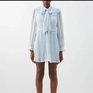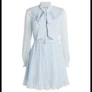 This minidress from Self-Portrait is crafted of chiffon with a broderie collar and a pleated skirt.