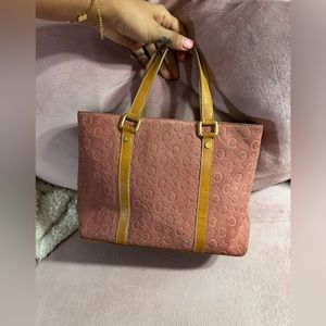 CELINE Tote Bag Pink Suede Leather Vintage Handbag