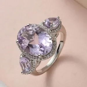 Genuine Rose De France Amethyst Ring in Platinum/925 Sz 6. New!