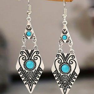 💸💲$10 Geometric With Turquoise Dangle Earrings
