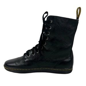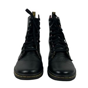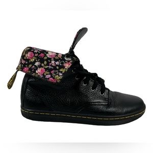 Dr. Doc Martens Boots Womens 8 Stratford Black Leather Shoes Floral Lined