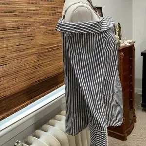 Gray and white stripe off the shoulder blouse..bluish grayish