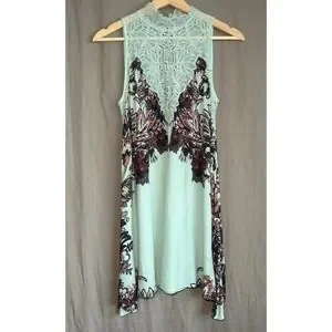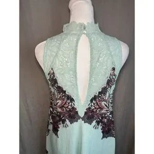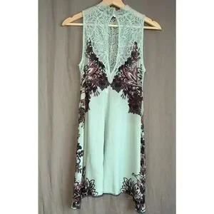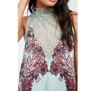 Intimately Free People Marsha Lace Slip Dress Turquoise Blue Floral Flowing XS