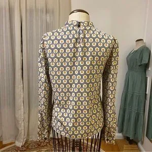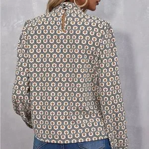 SHEIN | Button Neck Keyhole Back Geo Long Sleeve Top