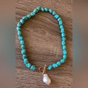 Turquoise stone stackable with other necklaces for a cool summer outfit in gold hardware