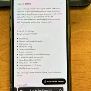 Comes with dust bag and original receipt. Impeccable condition. Barely used. Stored with care since purchased. Detachable coin purse. Detachable mixed media strap. Detachable leather strap. Mahina Perforated calf leather. Microfiber lining. This is a stunning bag.