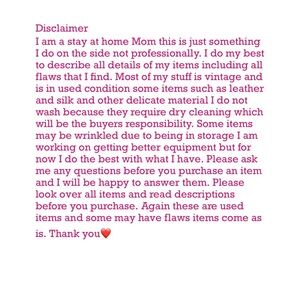 Please look at pictures for flaws and ask any questions BEFORE buying