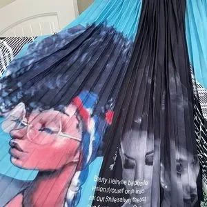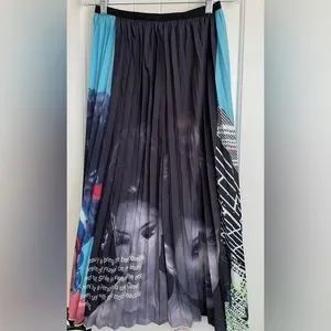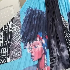 Beautiful Halo women’s street fashion cool girl printed midi a-line pleated skirt.