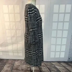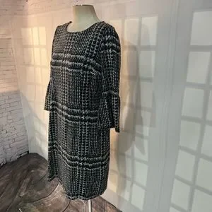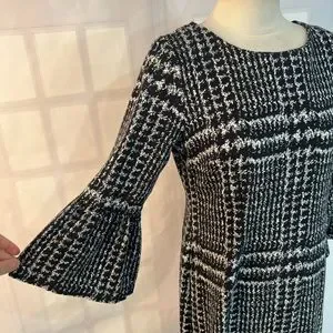 Talbots long bell sleeve warm plaid sweater like sheath dress size 8